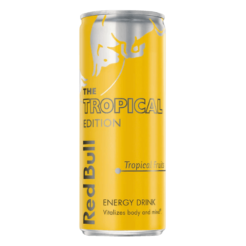 Red Bull Tropical Edition combineert de bekende Red Bull energieboost met een exotische tropische fruitsmaak. Ideaal voor extra focus en energie, waar en wanneer je het nodig hebt.